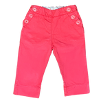Pantaloncito rojo con botones adelante y volados en bolsillos trasero