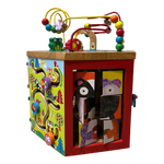 Este cubo de actividades permite horas de juego y aprendizaje. Con excelentes actividades en cada una de sus caras, incluye un ABC de giratorio, una montaña rusa de pelotitas de madera, puertas para abrir y cerrar y mucho más. Este cubo de madera ayuda a trabajar la coordinación y la motricidad en los niños.